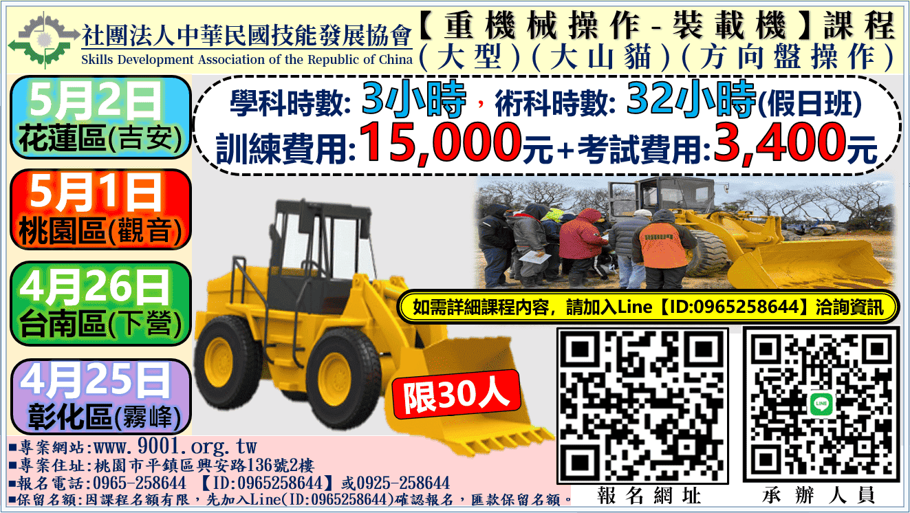 桃園區【裝載機操作(大型 大山貓)】
