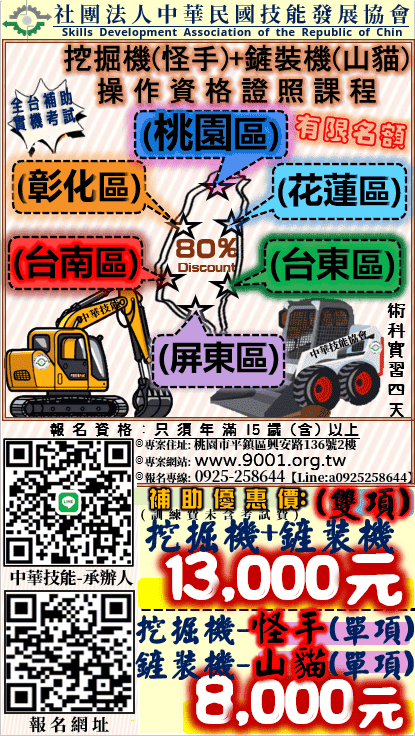台東區❤雙項❤【挖掘機+鏟裝機】課程