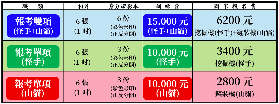 報名完成後 請麻煩聯繫確認本單位-專案承辦人員,並且告知報名人員姓名及報名地區,以便往後通知聯繫考證訓練課程 :中華技能-怪手山貓承辦人員【