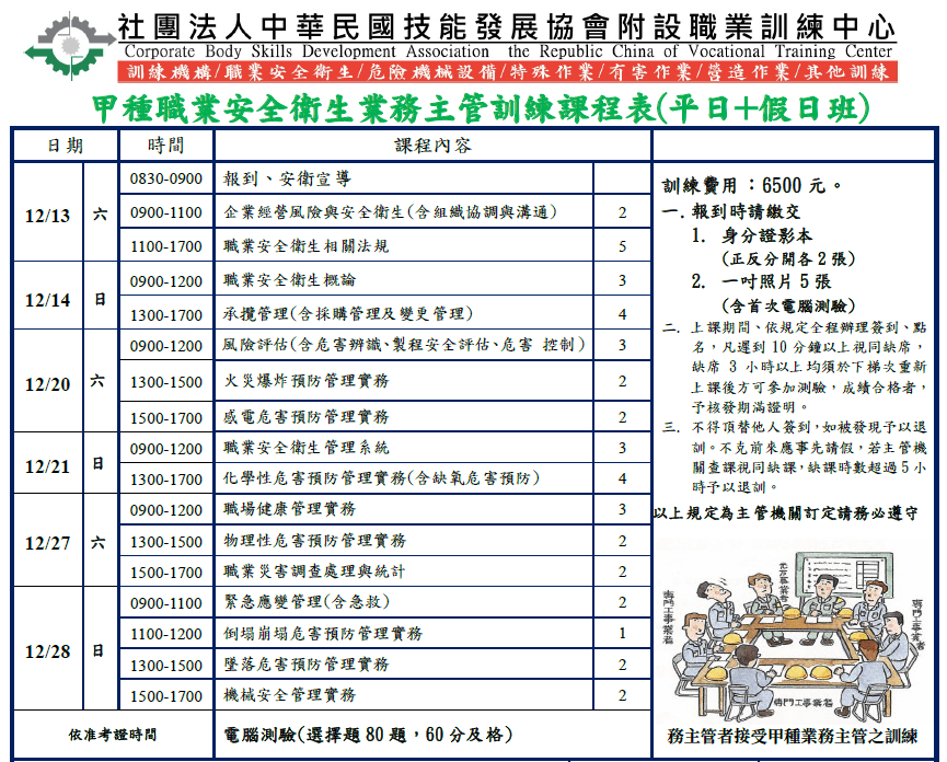 ※甲種、乙種職業安全衛生業務主管及營造業甲種、營造業乙種職業安全衛生業務主管課程結訓測驗以改為電腦測驗。