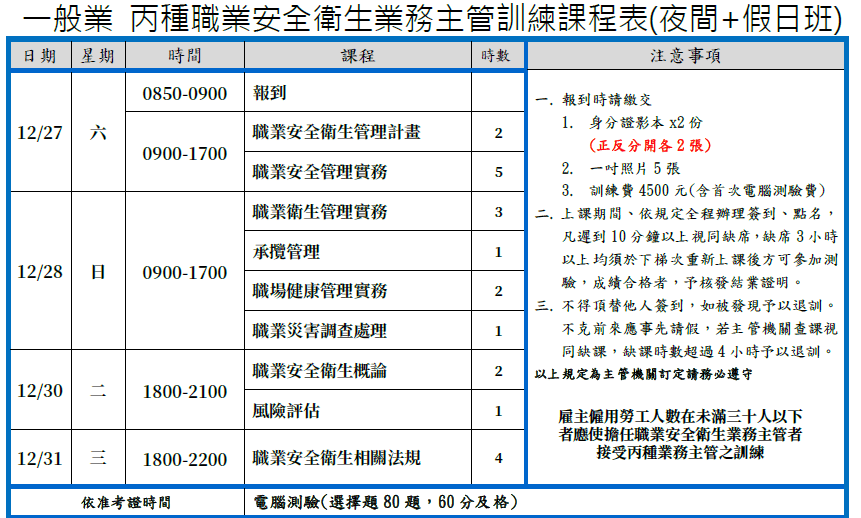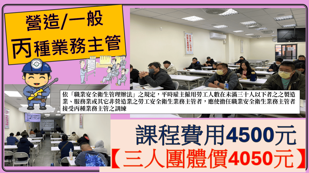 丙種職業安全衛生業務主管(一般業)【新訓】