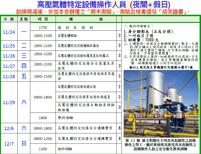 高壓氣體特定設備操作人員【新訓】