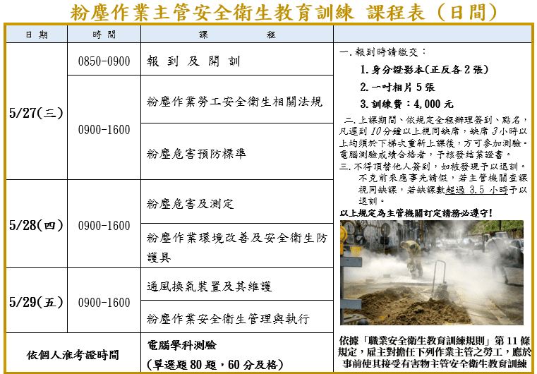 粉塵作業主管【新訓】