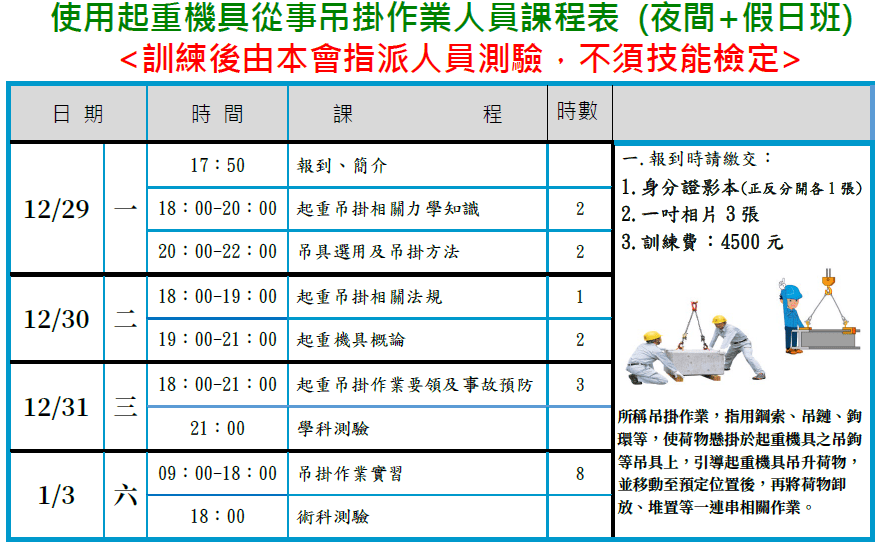 備註:學科:12/29、30、31(夜間),術科:1/3(假日)