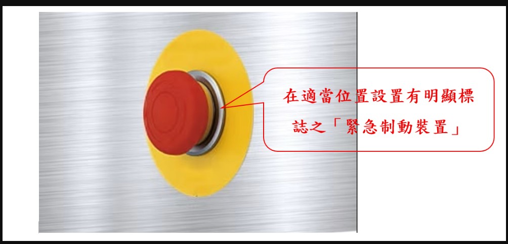 依職業安全衛生設施規則第45條規定,雇主對於使用動力運轉之機械,具有顯著危險者,應於適當位置設置有明顯標誌之緊急制動裝置,立即遮斷動力並與制動系統連動,能於緊急時快速停止機械之運轉。此外,雇主應依現場安全衛生狀況及實際作業情形予以評估,除強化按鍵標示與設置安全防護設施(如感應遮斷器)外,更應落實員工安全操作訓練,以防止誤操作致發生職業災害事故。